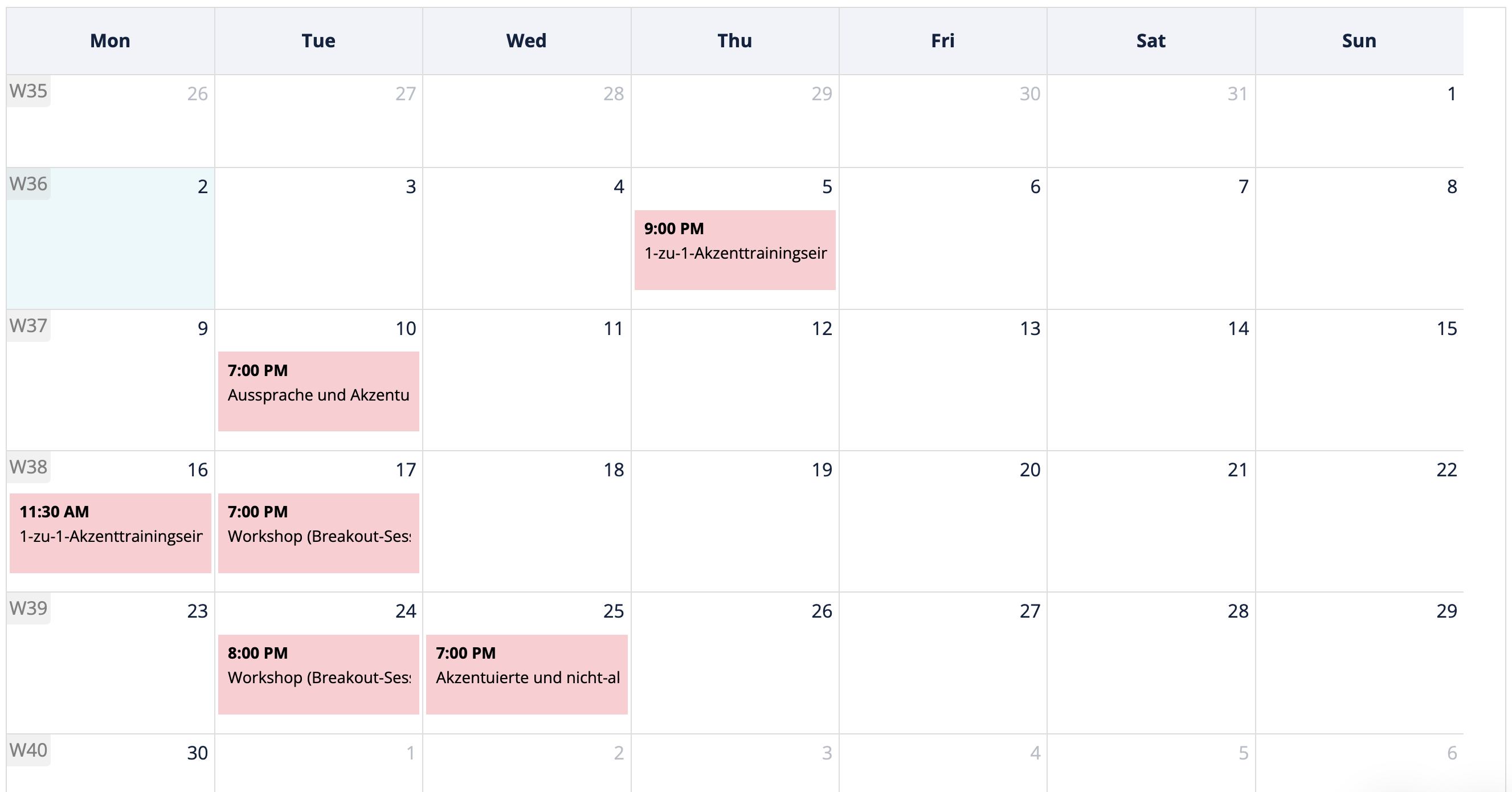 Regelmäßig finden Gruppen-Workshops mit einer Lehrkraft aus dem Akademie-Team zu verschiedenen wortschatz- oder aussprachebezogenen Themen statt. Du kannst dich für alle Workshops eintragen, die dich interessieren – ohne weitere Kosten.